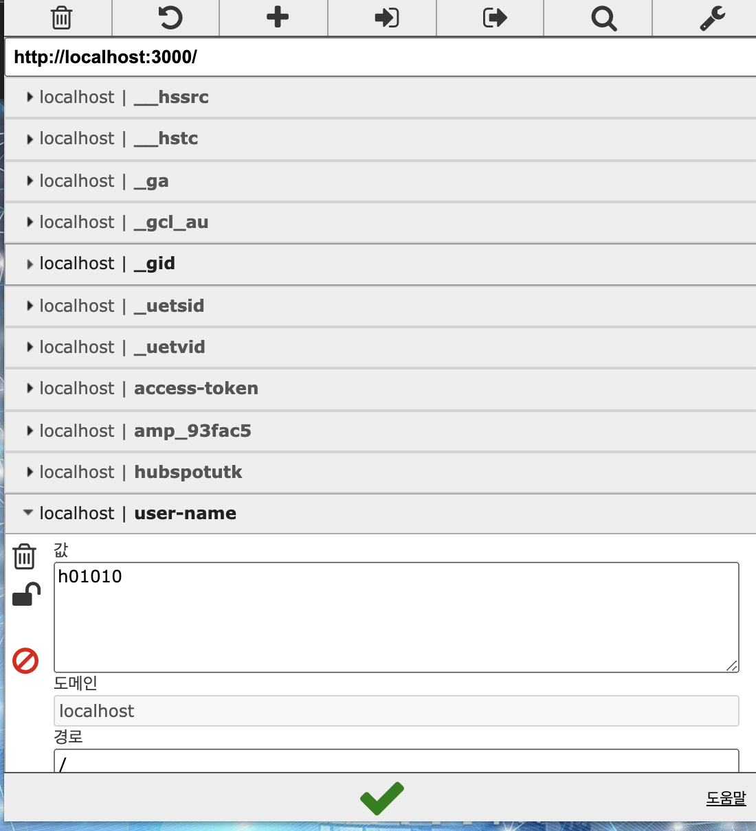 - 로그인 화면에서 환영한다고 깜찍하게 띄워주기 위해 username도 cookie에 저장(위험한 방법이지만, 일단 가벼운 프로젝트이기에 이렇게 수행)
